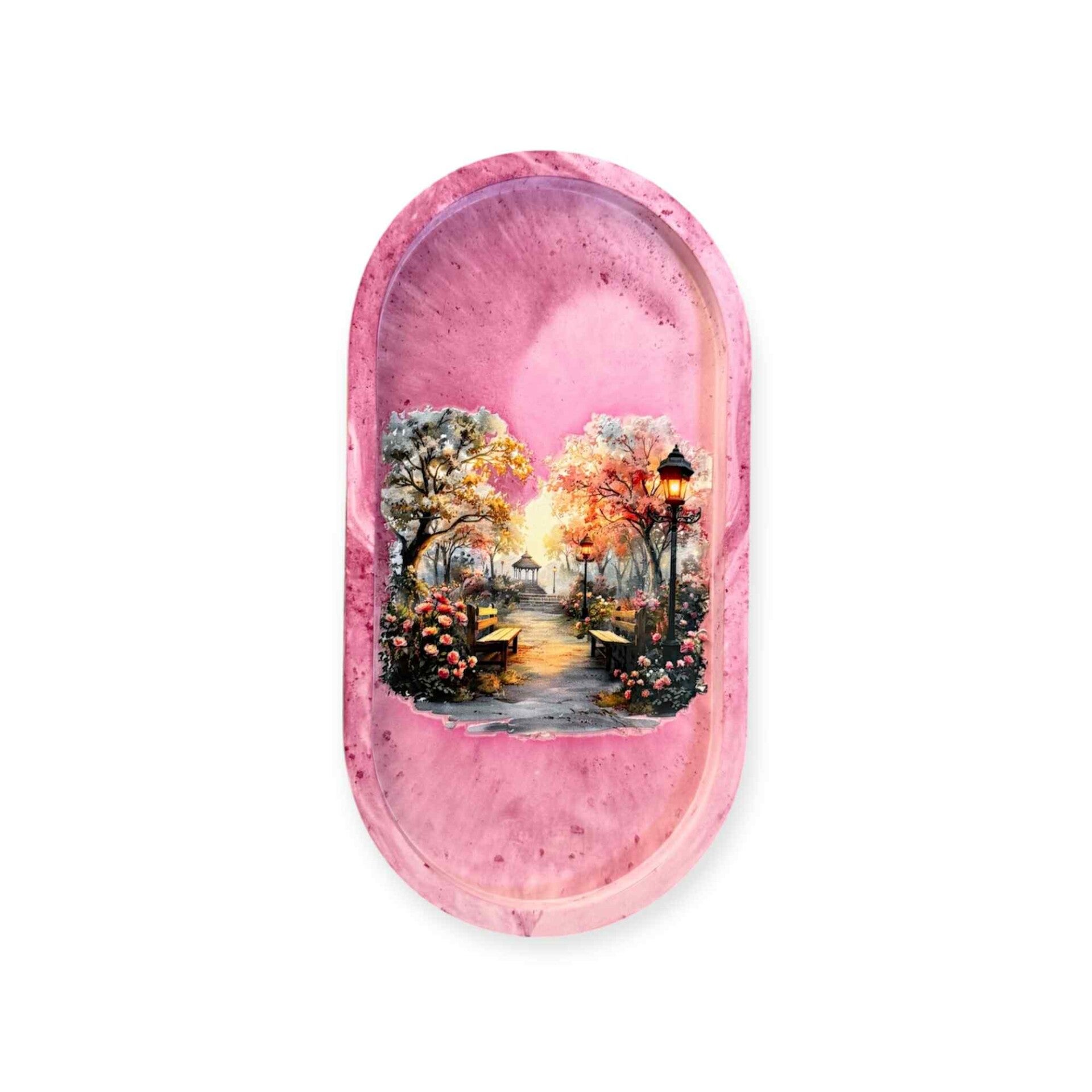 Pink Marble Tray – Romantic Garden Scene Handmade Eco Resin